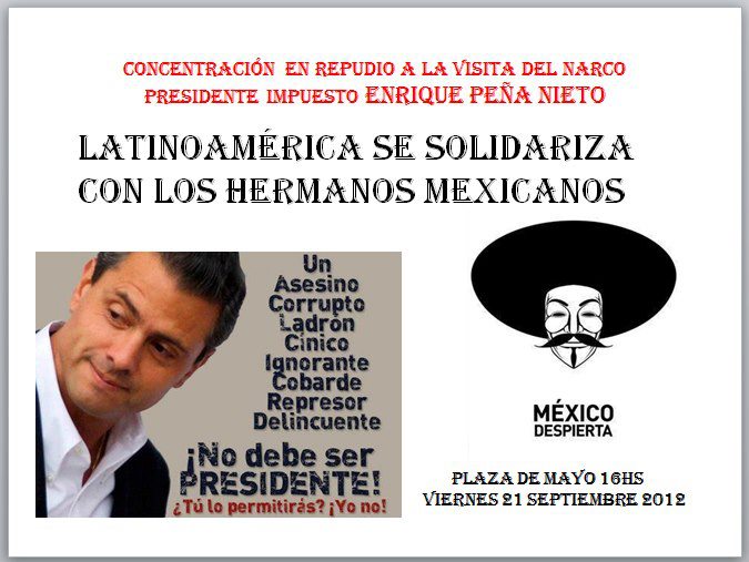 Ahora que Enrique Peña Nieto visita América del Sur, estudiantes y trabajadores mexicanos en Chile y Argentina preparan protestas contra la imposición de Peña como presidente de México.